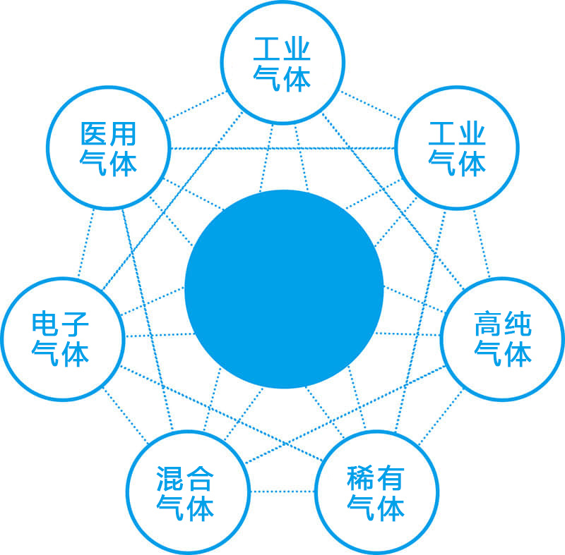 公司主营业务:工业气体,液态气体,高纯气体,稀有气体,混合气体,电子气体,标准气体,医用气体